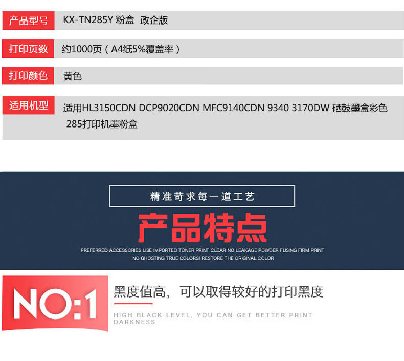 凱欣KX-TN285Y 適用HL3150CDN DCP9020CDN MFC9140CDN 9340 3170DW 硒鼓墨盒彩色 285打印機(jī)墨粉盒 全國(guó)統(tǒng)一價(jià):268元